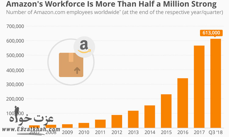 آمازون کار خود را با فروش کتاب به صورت آنلاین آغاز نمود و رفته رفته توسعه پیدا کرد. به طوری که در حال حاضر بخشی بزرگی از تجارت جهانی را به خود اختصاص داده است.