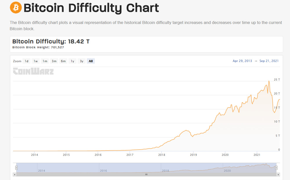 تا 2 آوریل 2021 ، سختی رمز ارز برای بیت کوین 23.14 تریلیون بود. در مقایسه با 1 آوریل 2018، می بینیم که در آن زمان سختی بیت کوین 3.51 تریلیون بود.